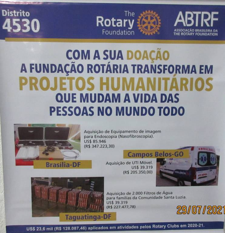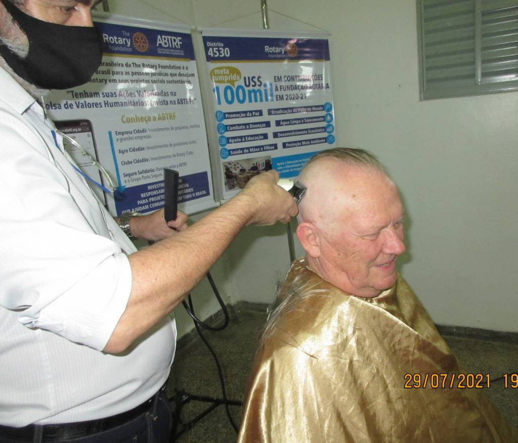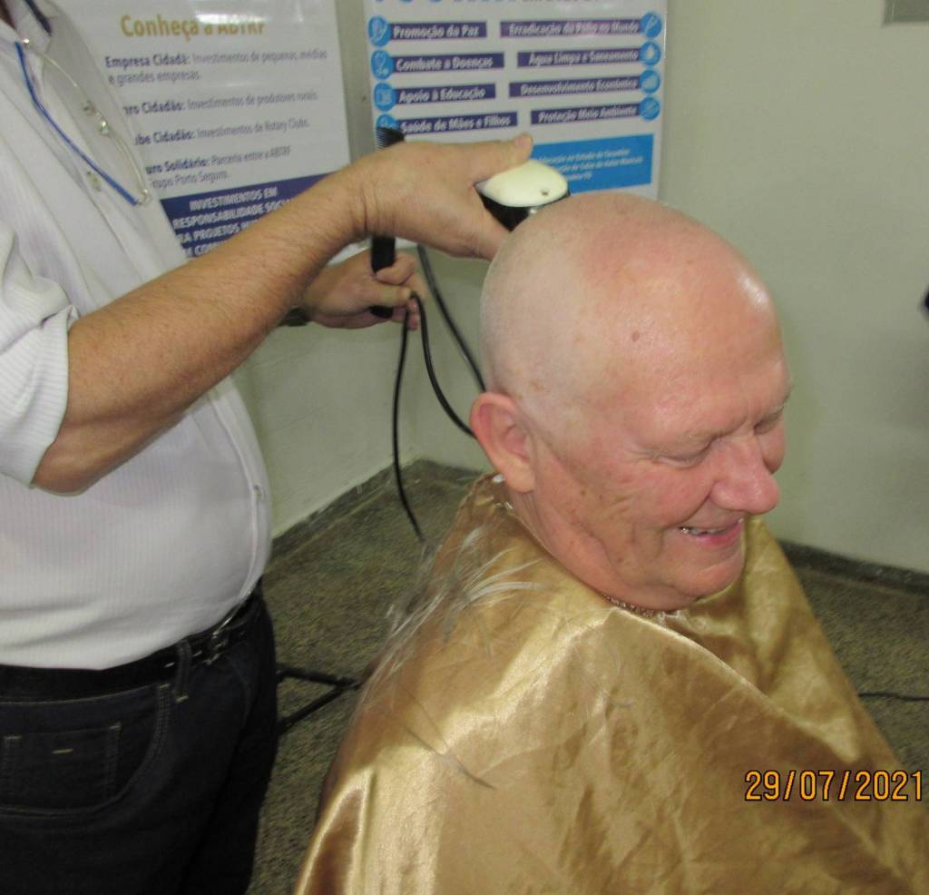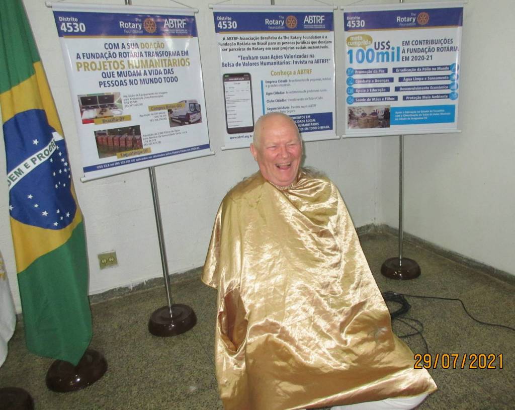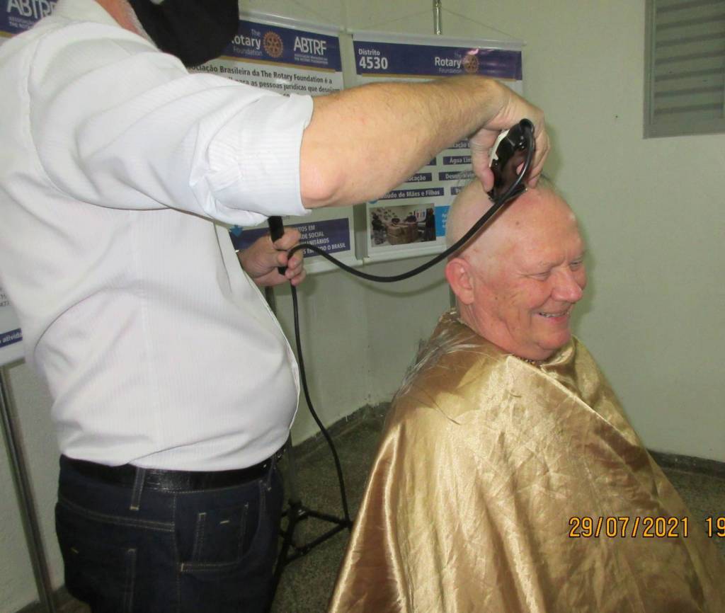 Conforme promessa feita pelo governador 2002-3 Chico Schlabitz associado do Rotary Club Brasília 5 de Dezembro, como presidente da comissão distrital de Fundação Rotária 2020-21, queria alcançar a meta da governadora Vera Ávila, para conseguir 300 mil dólares de doações para a Fundação Rotária, se atingisse o valor ele rasparia a cabeça, como não foi possível devido ao ano atípico, mas faltando 4 meses do ano rotário só tinha 40 mil dólares, devido seu grande esforço na campanha, foi conseguido alcançar a quantia de 100 mil dólares, por isso ele tomou a decisão de cumprir a promessa de raspar a cabeça. O evento aconteceu dia 29/7/21 às 19:30 horas, na sede do Rotary Club Guará Águas Claras, foi contratado um barbeiro, e teve as presenças da Christine esposa do Gd. Chico, companheiros Oscar Mendes e sua esposa Heloisa associados do Rotary Guará Águas Claras, e o companheiro Jordivar Filgueira associado do Rotary Club Brasília Lago Sul, representando a Imagem Pública do Distrito 4530. |