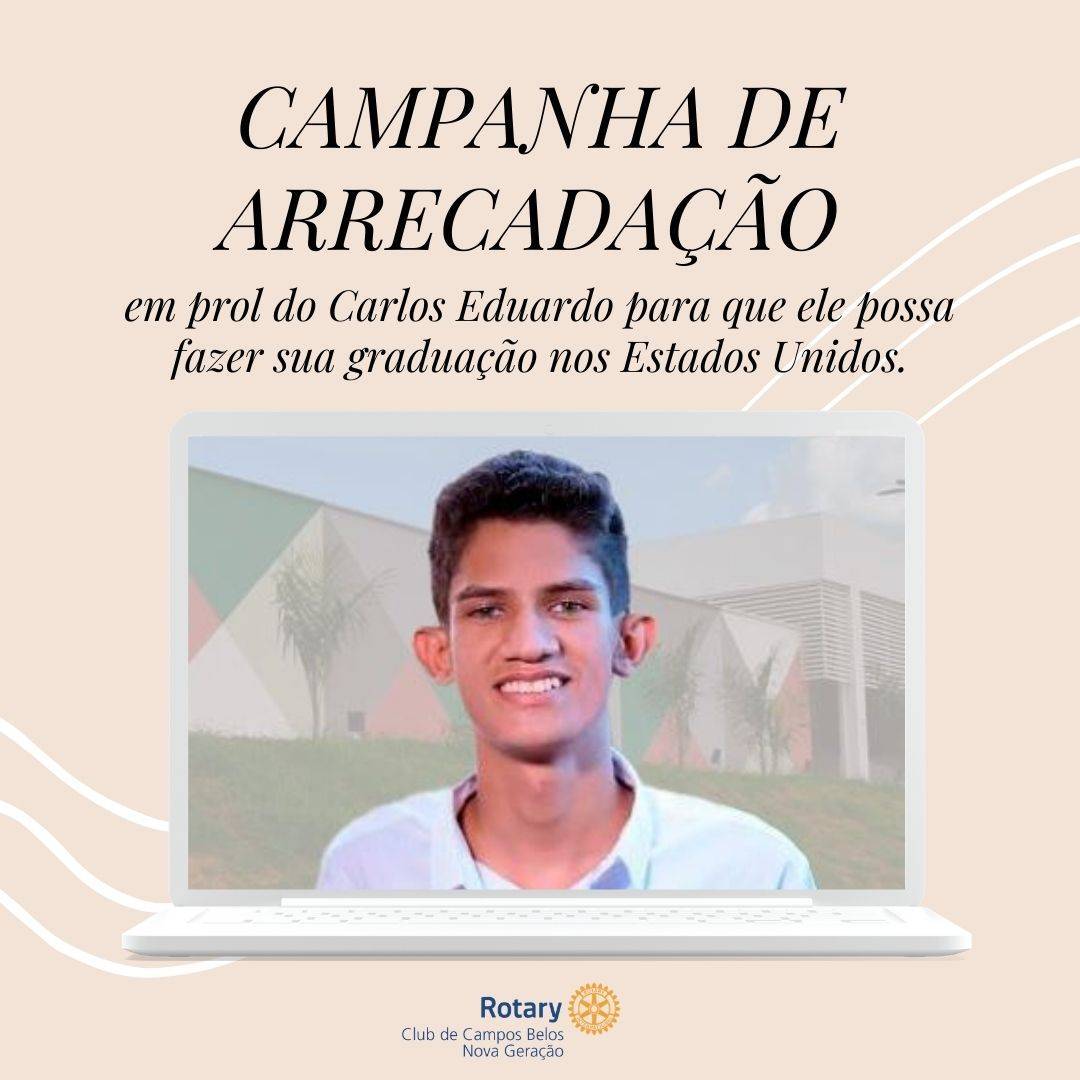 O Rotary Club de Campos Belos - Nova Geração torna pública a Campanha de Arrecadação em prol dos estudos do estudante Carlos Eduardo Alves de Moura.