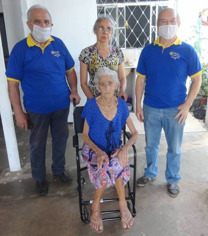 Rotary Club Brasília Lago Sul presidido pelo companheiro Edmundo Peres acompanhado do companheiro Jordivar Filgueira, doou dia 29/01/2021 ás 10 hs, 01 cadeira de banho adquirida com recurso do FDUC-Fundo Distrital de Utilização Controlada, para a senhora Francisca Erundina moradora da cidade do Paranoá-DF.