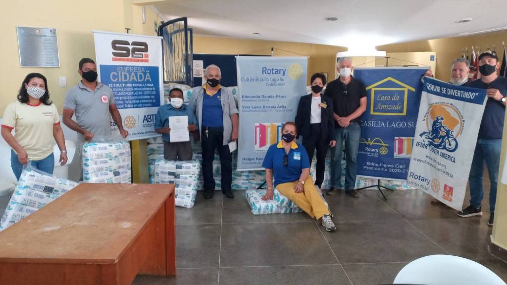 Idosos são beneficiados com 8 mil fraldas geriátricas, dia 16/6/21 às 16:00 hs, na sede da Fundação de Rotarianos de Brasília, doadas pelo Rotary Club Brasília Lago Sul sob a presidência do companheiro Edmundo Peres, acompanhado pelos companheiros do clube: Gd 2014-15 Demetrius Contoyannis, Cícero Ceccatto, Vital Cordeiro, Jordivar Filgueira, e a Edna Peres presidente da Casa da Amizade.