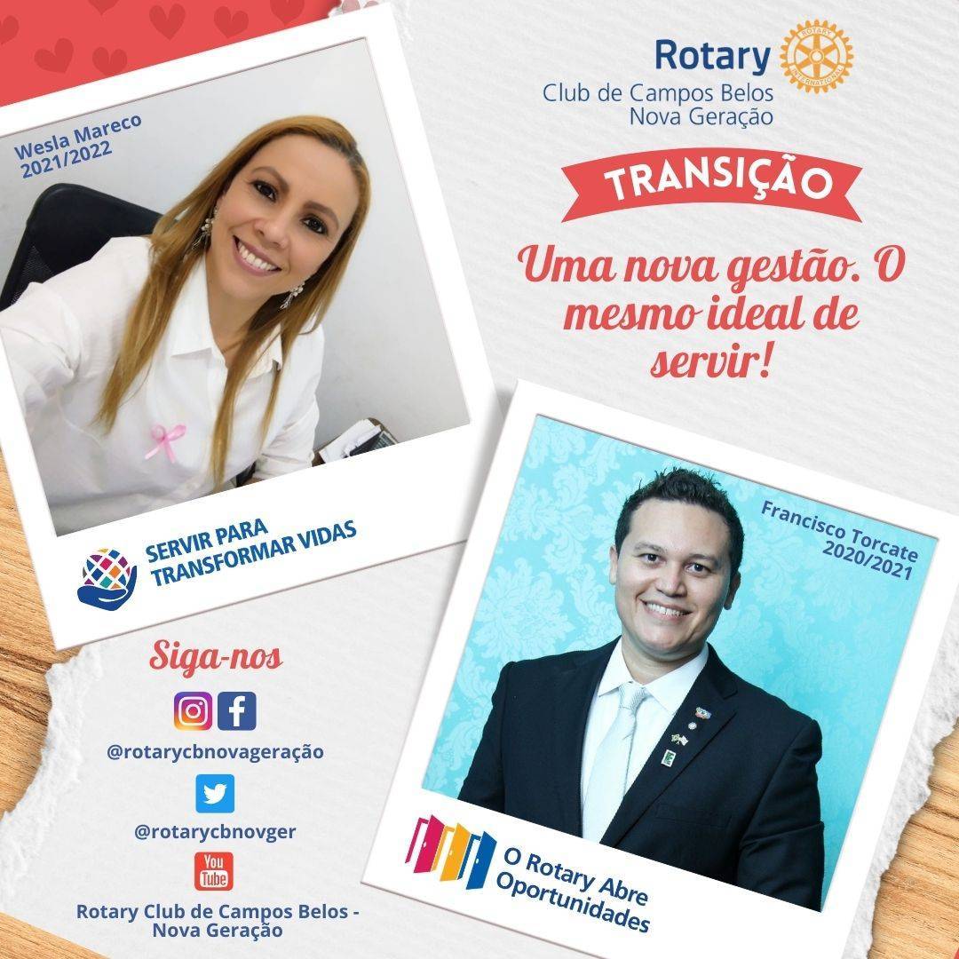 Nesta quarta, 30, encerrou-se o ano rotário 2020-21 cujo presidente foi o associado Francisco Torcate. Com a presença expressiva dos associados, o Rotary Club de Campos Belos - Nova Geração realizou ontem sua ASSEMBLEIA ONLINE para encerramento da gestão. Na oportunidade os relatórios do ano 2020/2021 foram aprovados por unanimidade, além de deliberações importantes para a administração do clube.