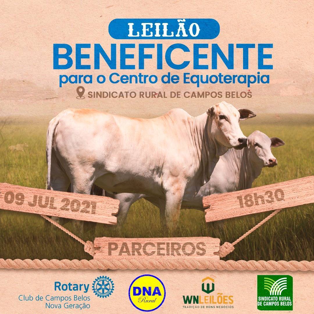 O Rotary Club de Campos Belos - Nova Geração, por meio de parceria com a WN Leições, DNA Rural e com o Sindicato Rural de Campos Belos, além do apoio irrestrito do Leiloeiro Anderson Lima, participou do 10º Leilão de Gado de Campos Belos, realizado no último dia 09, no tatersal do Sindicato Rural.