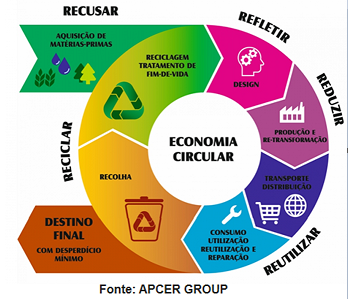 Para o Ministério de Desenvolvimento Regional (MDR), a economia circular propõe que os resíduos de uma indústria sirvam de matéria-prima reciclada para outra indústria ou para a própria. Além disso, defende o desenvolvimento de produtos levando em consideração o reaproveitamento que mantenha os materiais no ciclo produtivo.