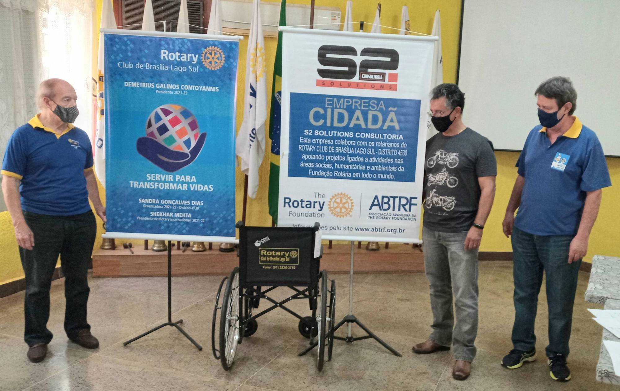 Sob a presidência do companheiro Demetrius Contoyannis do Rotary Club Brasília Lago Sul, com a presença do companheiro Jordivar Filgueira, foi doada mais 01 cadeira de rodas dia 8/9/21 às 12:00 hs, na sede da Fundação de Rotarianos de Brasília.