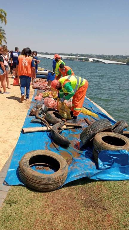 Foram recolhidos no fundo lago 255 quilos de lixos diversos: pneus, garrafas, latas, plástico duro, frascos, alumínio, metal ferroso, tecidos, roupas, borracha, couro, madeira, restos de comidas outros.