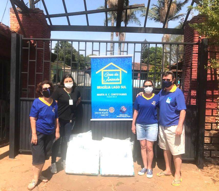 A Casa da Amizade do Rotary Club Brasília Lago Sul presidido pela Marta Contoyannis, acompanhada do seu esposo companheiro presidente do clube Demetrius Contoyannis, e da Graça Cardoso, dia 13/9/21 às 12:00 hs, doou 380 fraldas geriátricas para o Lar de Idosos Francisco de Assis no Núcleo Bandeirante - DF.