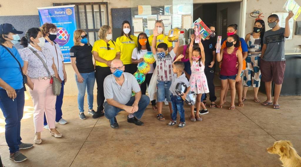A Casa da Amizade do Rotary Club Brasília Centenário presidida pela Maria do Carmo, com a participação da Fatima Borborema, Edileide Cristina, Fatima Silva e Maria Jose, e o presidente do clube Paulo Fernandes, realizou dia 9/10/21 em parceria com a Administração Regional de Brazlândia, uma grande festa comemorando o "Dia da Criança", doaram centenas de brinquedos para as crianças de famílias carentes da Associação dos Catadores e Recicladores, e da Associação de Brazlândia Arte e Vida.