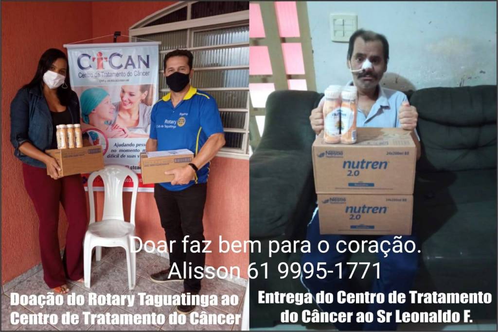 Na tarde de hoje, 17 de novembro de 2021, o Rotary Club de Taguatinga entregou 54 unidades do suplemento Nutrem 2.0 para o CTCAN (Centro de tratamento do Câncer) que fica localizado na Quadra 401 conjunto 06 lote 26 casa 02 - Samambaia Norte.