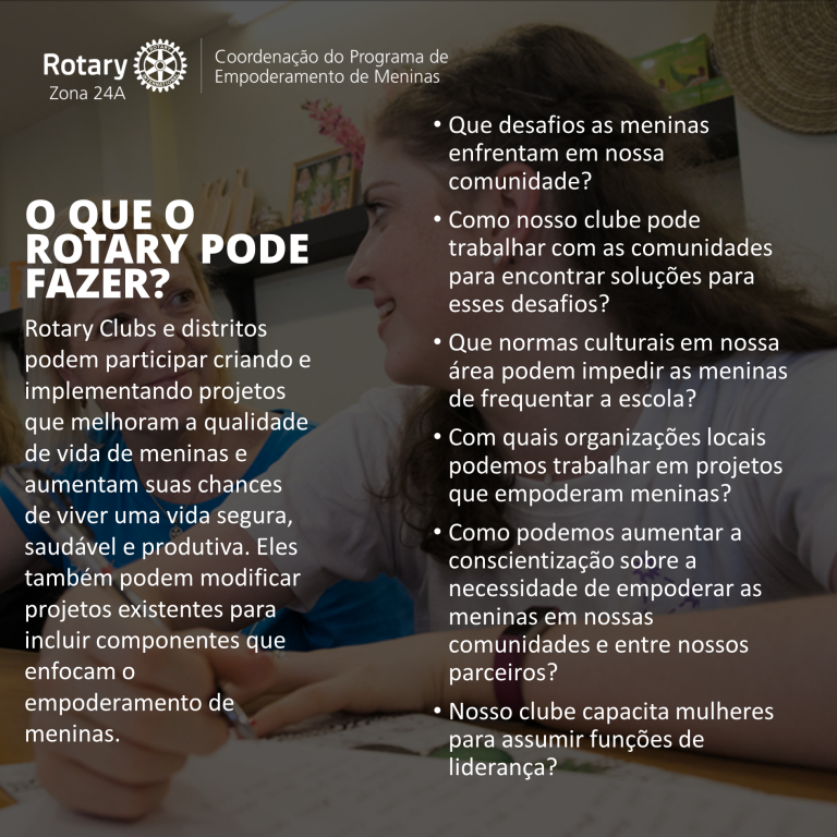 • inspirar clubes e distritos a implementar projetos humanitários para empoderar meninas.