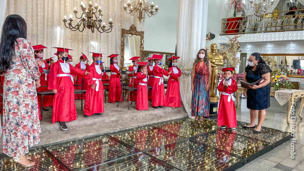 Foi realizado no sábado, 18, a formatura dos 40 pequeninos da Escola Classe Jiboia que fica na Zona Rural de Ceilândia, cerca de 40km de Taguatinga, viveram hoje um dia de conto de fadas ao receberem o Diploma de Educação Infantil, todos vestidos com uma linda beca vermelha.