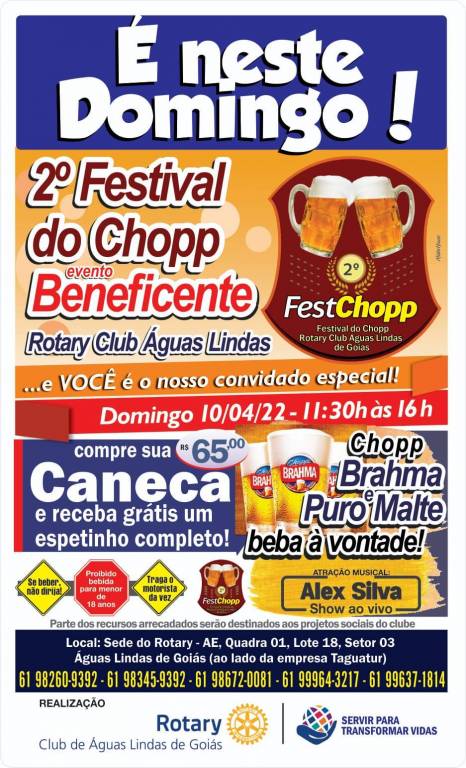 No domingo, 10 de abril, Rotary Club de Taguatinga participa 2º Festival do Chopp organizado pelo Rotary Club de Águas Lindas.