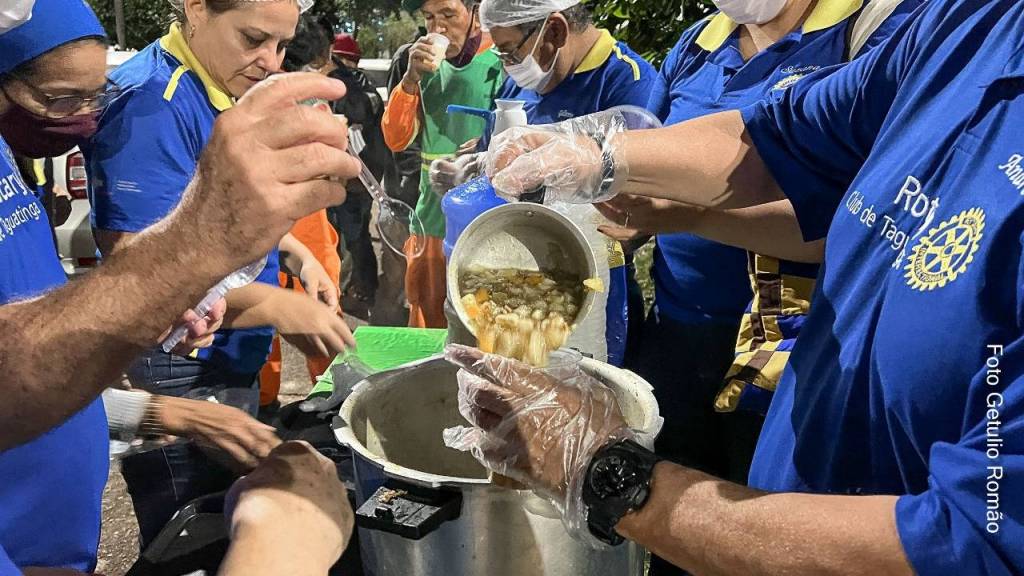 A sopa e feita pelas próprias companheiras e apoio do Rotary Clube de Taguatinga durante o dia na cozinha da sede que fica no centro de Taguatinga. Acabou rápido. Mal chegaram ao local já tinha uma fila aguardando o horário “sagrado” das terças feiras.