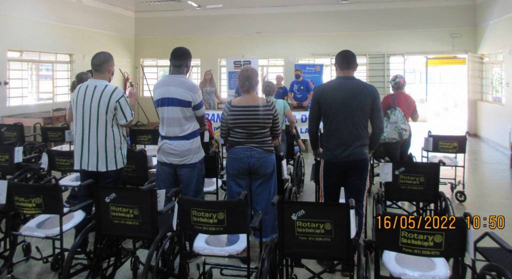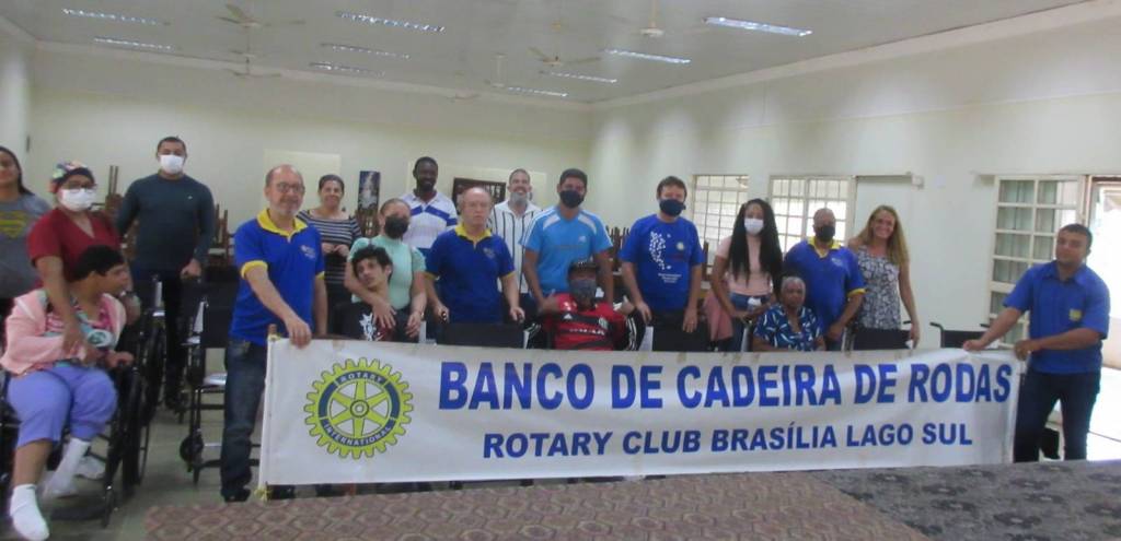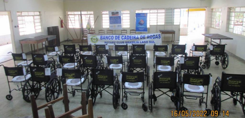 O Rotary club Brasília Lago Sul liderado pelo presidente Demetrius contoyannis, através do seu "Banco de cadeira de Rodas", coordenado pelo companheiro Jordivar Filgueira, dia 16/5/22 às 10:00 horas na sede da Fundação de Rotarianos de Brasília, doou 26 cadeiras de rodas e de banho para alunos do CEE Centro de Ensino Especial II de Ceilãndia DF.