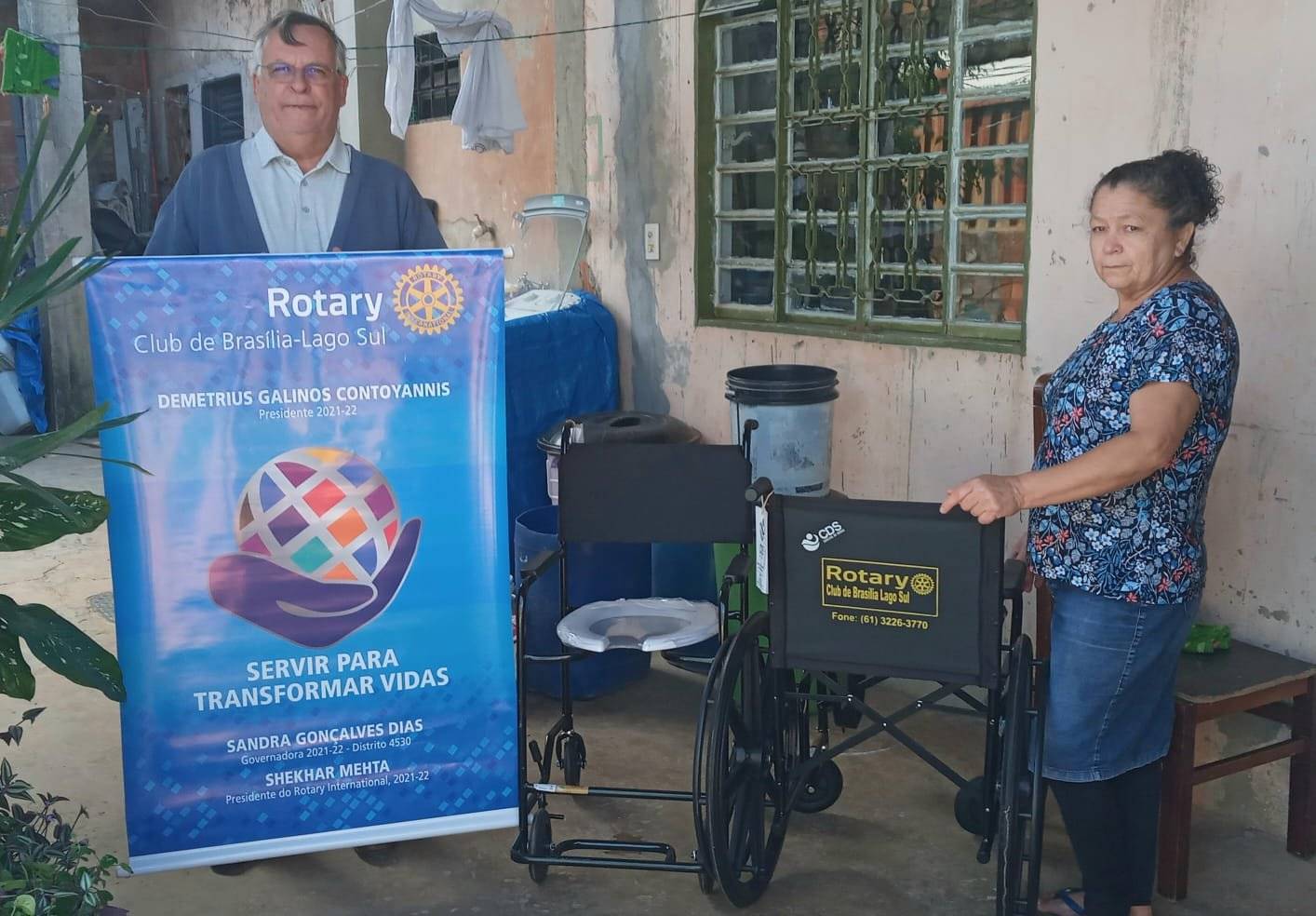 O Rotary Brasília Lago Sul presidido pelo companheiro Demetrius Contoyannis, representado pelos companheiros Jordivar Filgueira e Antônio Zeferino, dia 27/5/22 às 10:00 e às 12:00 hs, doou 02 cadeiras de rodas e 01 de banho.