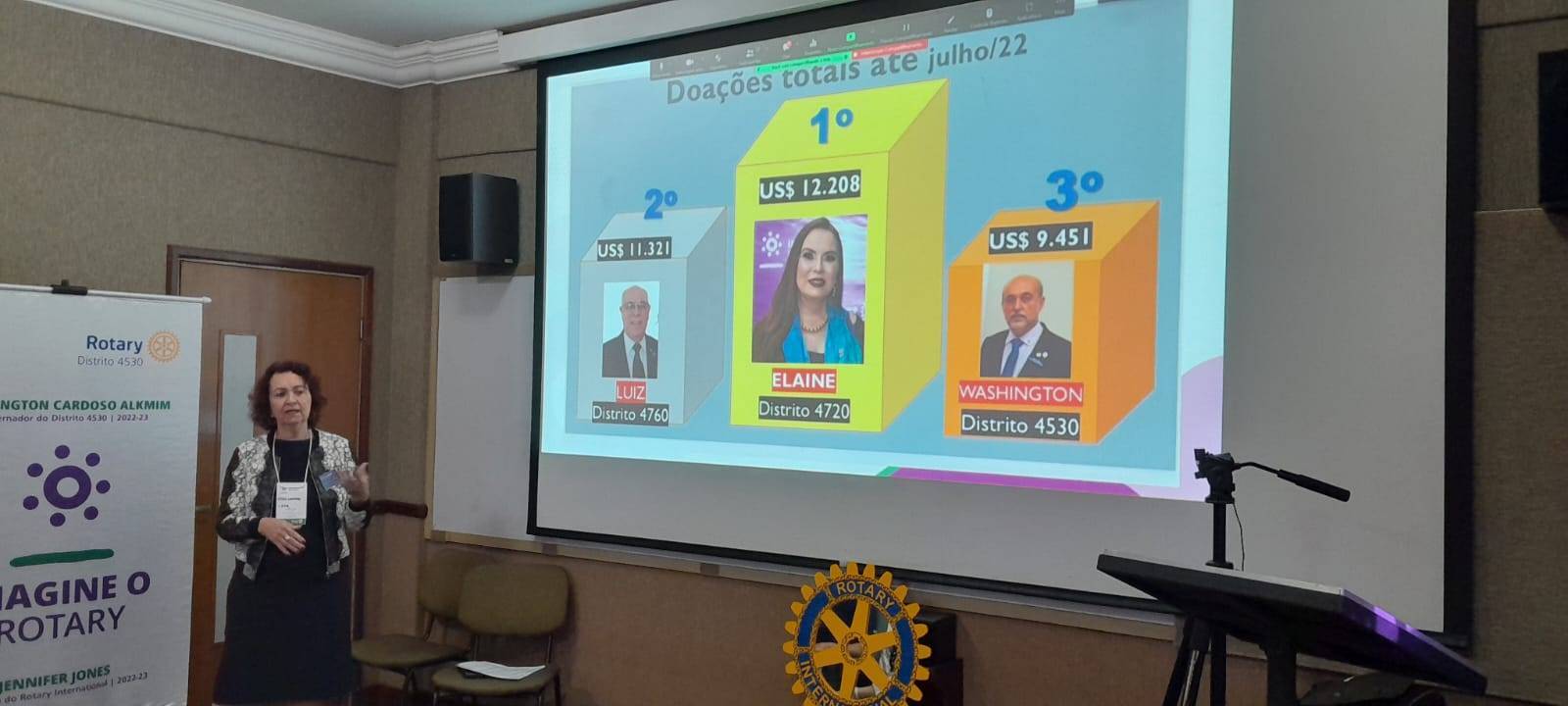 O Governador 2002-03, Chico Schlabitz, atual Presidente da Comissão Distrital de Fundação Rotária, falou sobre doações, em especial as de empresas cidadãs. Na sequência fez a apresentação da palestrante, Governadora 2018-19 e Coordenadora Regional de Fundação Rotária, Edite Campos. Edite Campos é associada do Rotary Club de Contagem-Cidade Industrial, localizado em Minas Gerais, Distrito 4760