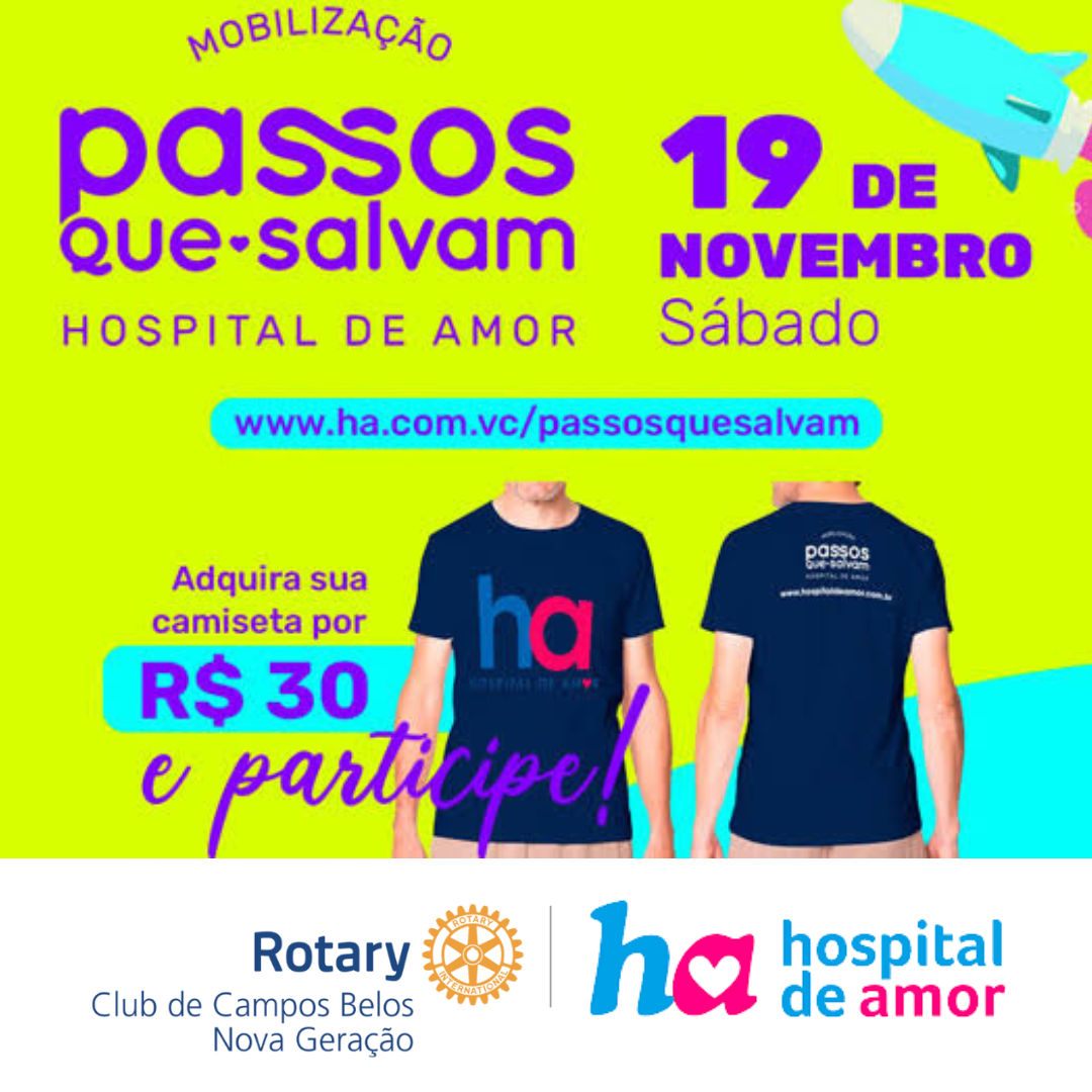No próximo dia 19 de novembro, sábado, ocorrerá em Campos Belos a mobilização "Passos que Salvam", em prol do Hospital de Amor. O tema deste ano é "Todos em Direção à cura do câncer infatojuvenil". O Hospital de Amor continua trabalhando incansavelmente para conscientizar a população sobre o câncer em crianças e adolescentes, para que, assim, seja possível trazer mais sorrisos aos seus pacientes e contribuir com suas histórias!