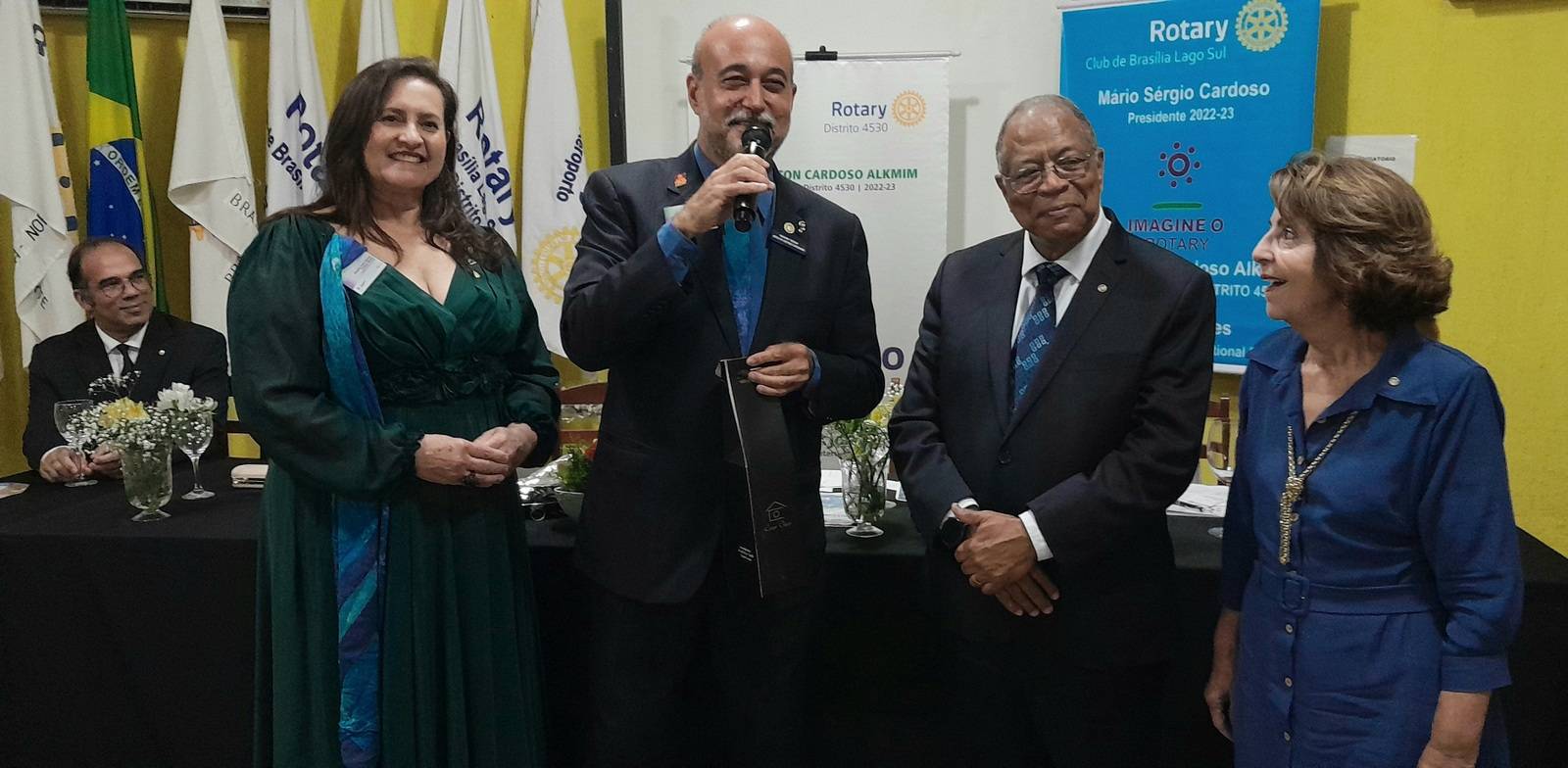 Rotary Club Brasília Lago Sul e Sua Casa da Amizade presididos pelo Mario Sérgio Cardoso e Graça Cardoso, receberam em visita oficial o casal governador Washington Alkmim e sua esposa coordenadora Silvanice Santos, no dia 18/11/22 na sede da Fundação deg Rotarianos de Brasília.
