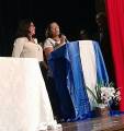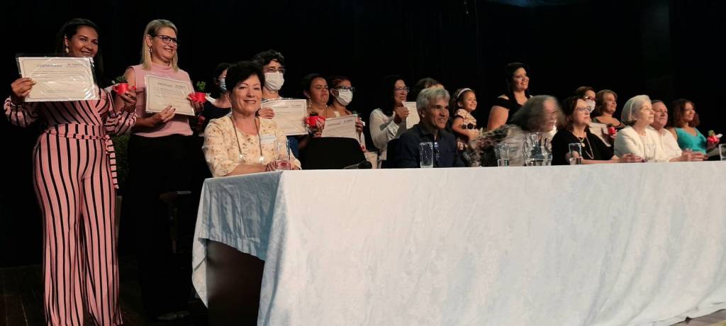 Elas receberam um Certificado Honorífico e uma lembrancinha, das mãos da Reitora Adriana Pelizzari.