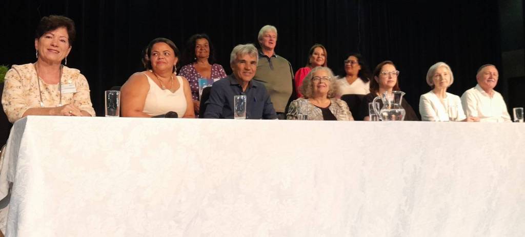 Sob os trabalhos de protocolo dos coordenadores do PAC, professores Vanildes e José Ivaldo, foi convidado as autoridades para comporem a mesa: Reitora da UCB Dra. Adriana Pelizzari, Dra. Silvia Keli coordenadora do Stricto Sensu, Sra. Vera Ávila governadora do 4530 2020-21, representando o governador do Distrito Washington Cardoso, Irmã Delci Secretária Executiva da MEB, Sr. Waldek Batista representante do CEPAFRE, Sr. André Araújo, da empresa Araújo Neto, Sra. Eunice Bastos representando os formandos das turmas de alfabetização, Sra. Marta Helena representando as alfabetizadoras.