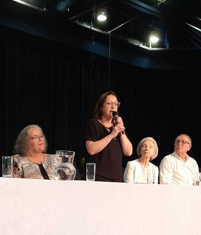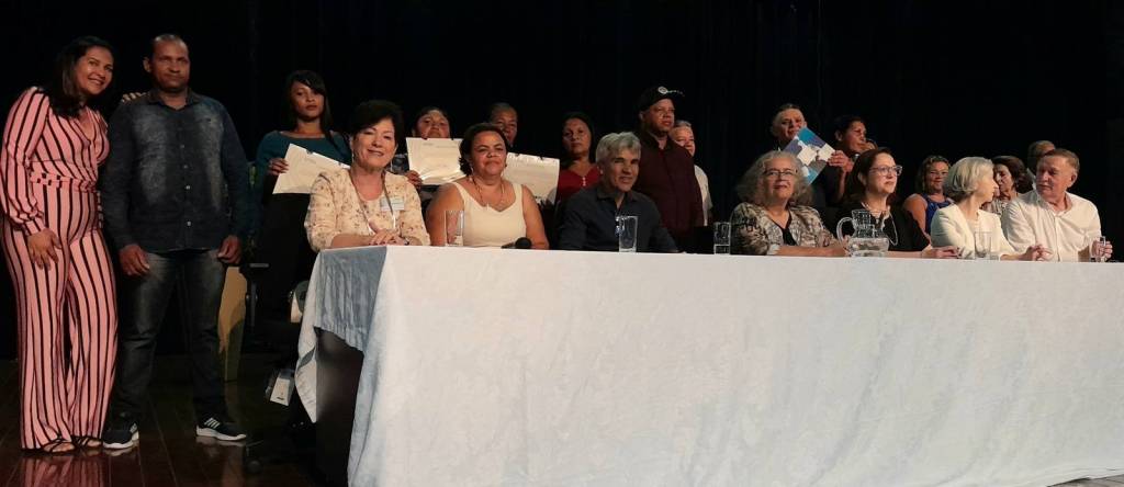 Também falou que foi o filho médico que descobriu o projeto e fez a matrícula dela. O filho estava presente e subiu ao palco para abraçar e parabenizar sua querida mãe. Foram aplaudidos abundantemente.