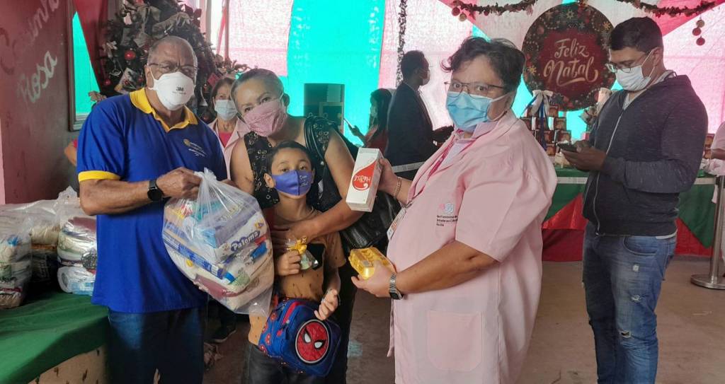 No evento de hoje, a Rede Feminina de Combate ao Câncer realizou uma linda festa de natal, durante o dia foram entregues 621 cestas básicas e panetones para famílias previamente cadastradas.
