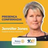 Confirmada a ilustre presença da Presidente do Rotary Internacional Jennifer Jones que tem a sua chegada, prevista, para o dia 25 de fevereiro.