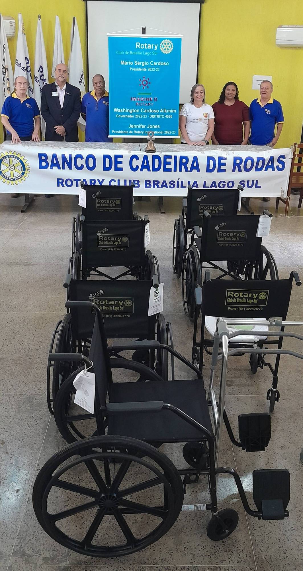 Foram doados 6 cadeiras de rodas, 01 de banho e 01 andador, dia 02/01/23 às 10:00 hs na sede da Fundação de Rotarianos de Brasília, pelo Rotary Club Brasília Lago Sul representado pelo presidente Mário Sérgio, Jordivar Filgueira Coordenador do "Banco de Cadeira de Rodas", e do companheiro Vital Cordeiro.