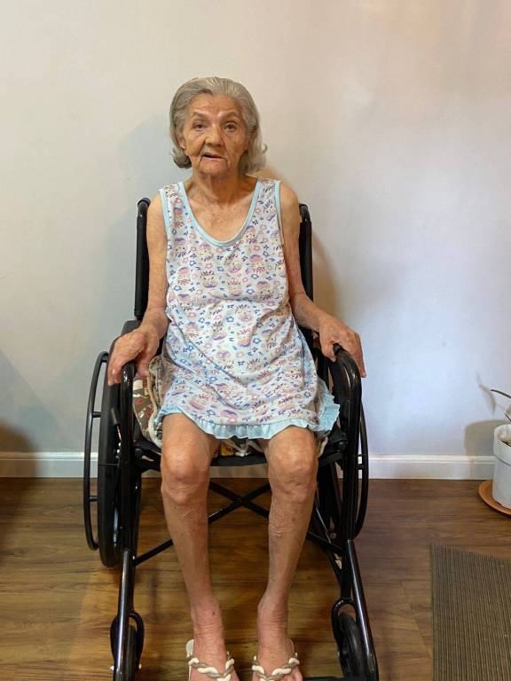Com 01 cadeira de rodas, a Sra. Cícera Maria da Silva Santos, com 93 anos de idade, moradora do Riacho Fundo, representada pela Sra. Nailda Sousa.