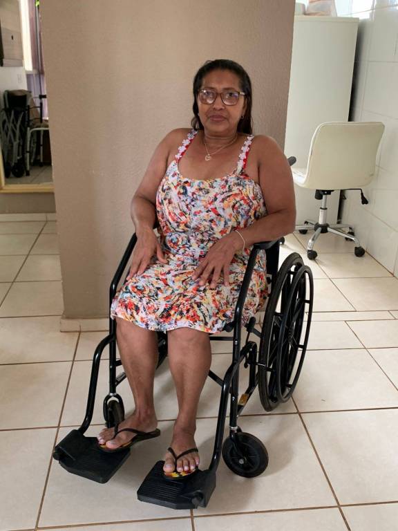 Com 01 cadeira de rodas, a Sra. Ana Moreira dos Santos, com 64 anos de idade, moradora do Varjão, representada pela sua filha Alessandra Moreira.