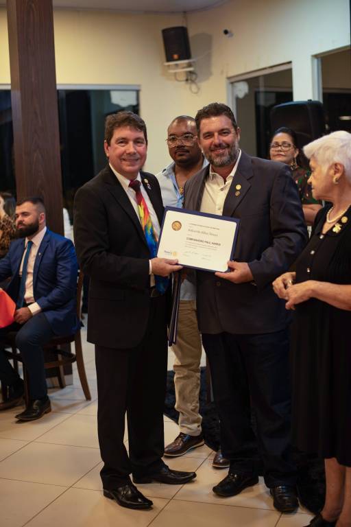 deram posse as suas novas diretorias para o ano rotário 2023-24, reunindo mais de 100 associados numa festiva animada com muito companheirismo, posse de novos associados, entrega de títulos Paul Harris e muita esperança de um mundo melhor para todos.