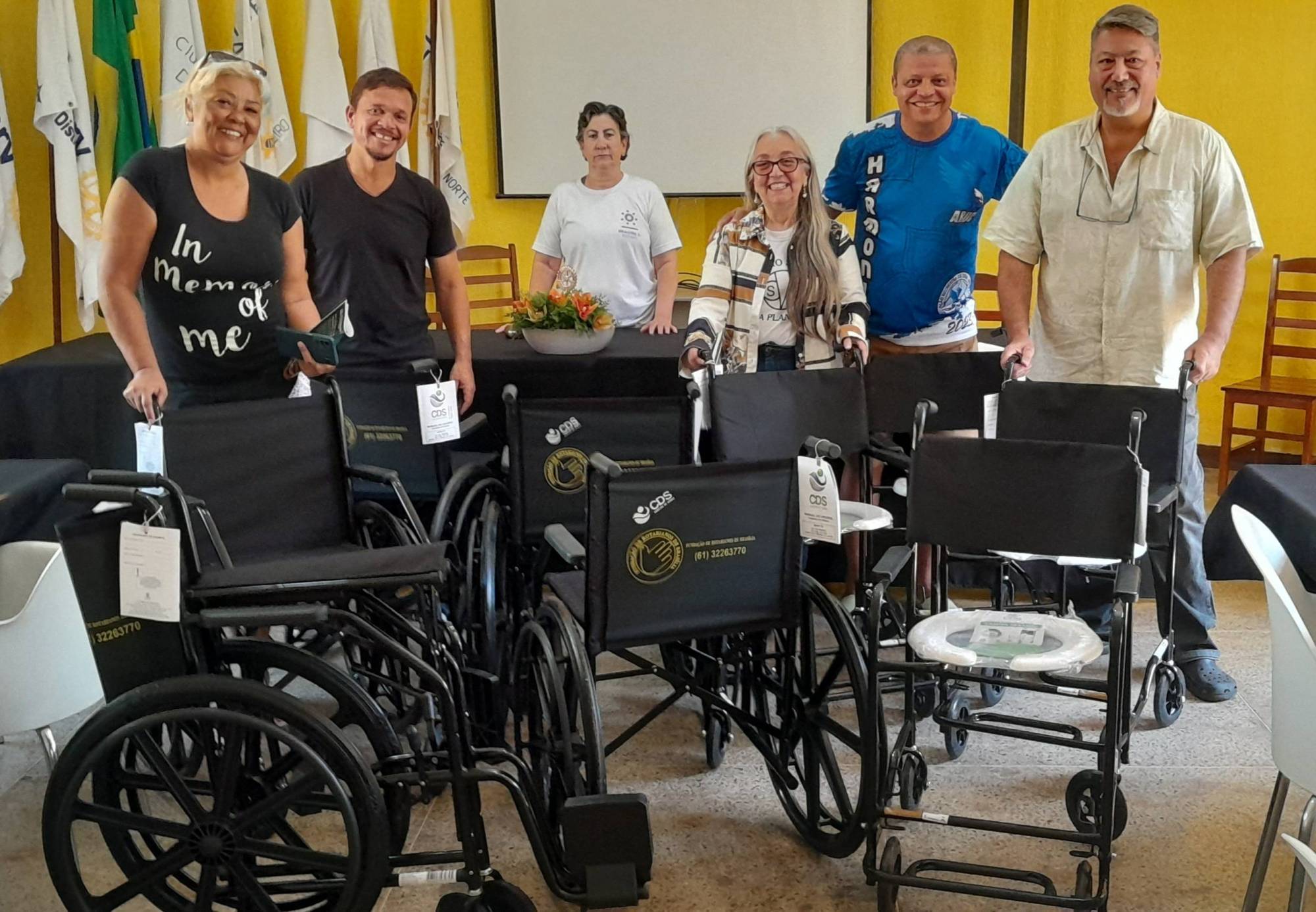 A Fundação de Rotarianos de Brasília sob a presidência pelo companheiro Francisco Borges, representado pela secretária da FRB Eliane Ribeiro, doou 05 cadeiras de rodas e 04 de banho em sua sede, SCES Trecho 3 lote 6 - Brasília - DF, dia 01/09/23 às 11:00 hs.
