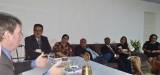 Após as tradicionais sessões de fotos no Marco Rotário, seguiram para a sede do clube para reunião com o Conselho Diretor e os presidentes das Comissões.