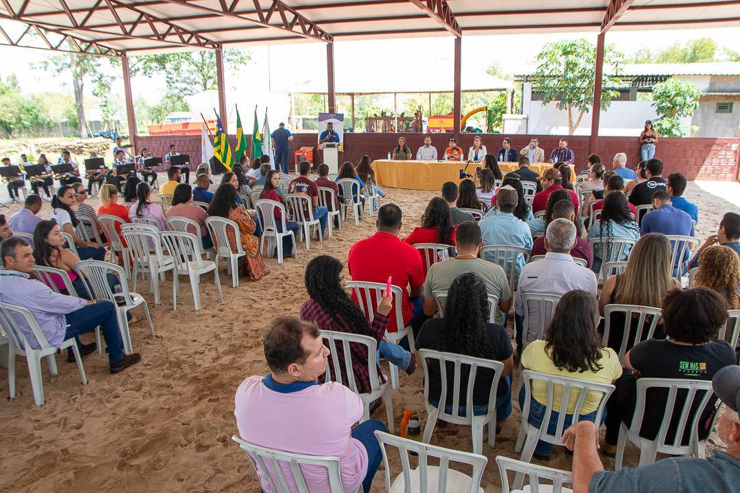 Compuseram a mesa de honra a Presidente 2023-24 do Rotary Club de Campos Belos - Nova Geração, Fabiane Gontijo, o Governador do Distrito 4530 do Rotary International, José Hilário Rodrigues, o Pró-Reitor de Desenvolvimento Institucional do IF Goiano, Prof. Gílson Dourado, que no ato representou o Magnífico Reitor, Elias Monteiro, o Prefeito da cidade de Campos Belos, Pablo Geovanni, o Diretor-Geral do IF Goiano - Campus Campos Belos, Prof. Fabiano Arantes, a vereadora Ivone do Touro, que no ato representou o Presidente da Câmara dos Vereadores, Rafael Santos e, por fim, o Coordenador de Extensão do IF Goiano - Campus Campos Belos e idealizador deste projeto no ano de 2017, Prof. João Rufino.