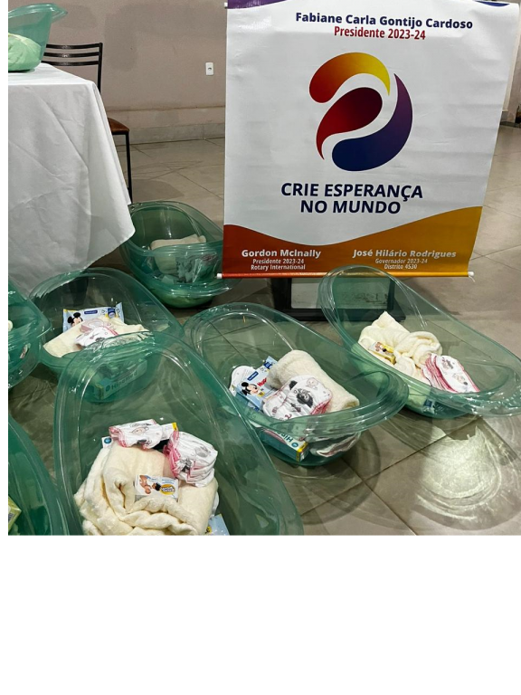 O Rotary Club de Campos Belos - Nova Geração, por meio de um subsídio distrital da Fundação Rotária, adquiriu e montou mais 50 kits maternidade para o Projeto "Aconchego de Mãe".