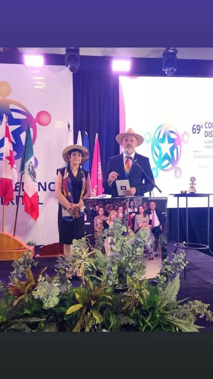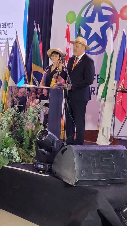 José Hilario Rodrigues, governador 2023-24, e Cristiania Carvalho, coordenadora 2023-24, foram os grandes anfitriões de toda a conferência. O representante de RI, GD 2021-22 do Distrito 4640, Sergio Baseggio, e sua esposa Marta, associados ao Rotary Club de Francisco Beltrão-Alvorada, Paraná, agradeceram o carinho com que foram recebidos e registraram a honra e responsabilidade de representar o Presidente Gordon Mclnally.