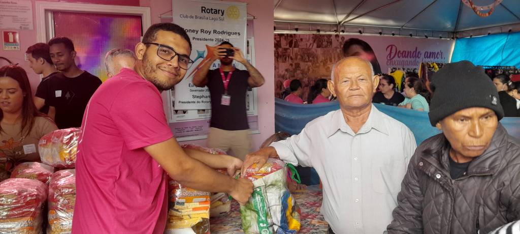 No dia 30/10/24 quarta-feira às 8:00 hs, o Rotary Club de Brasília Lago Sul sob a presidência do rotariano Roney Roy, representado pelos rotarianos Demetrius Contoyannis, Marta Contoyannis, Graça Cardoso e Jordivar Figueira, doou 1.630 kg (100 cestas básicas) com a parceria e patrocínio das empresas Mané Mercado, R2 Produções e Fome de Música, representadvos pelo Duda (Mídia), para a Rede Feminina de Combate ao Câncer, representada pela coordenadora Larissa Bezerra. A Rede Feminina está sediada no Hospital de Base no Plano Piloto - DF.