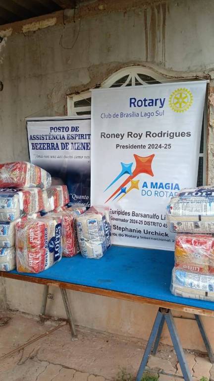 A campanha de alimentos continua, dia 09/11/24 às 11:00 hs sábado, o Rotary Club de Brasília Lago Sul presidido pelo companheiro Roney Roy, representado pelo companheiro Álvaro Diniz, doou 652 kg de alimentos (40 cestas básicas), com a parceria e patrocínio das empresas: Mané Mercado, R2 Produções e Fome de Música, para o Posto de Assistência Espiritual Adolfo Bezerra de Menezes, CNPJ 50.133.074/0001-74 - Q. 209 conj. H Lote 01, Sol Nascente - (Ceilândia).
