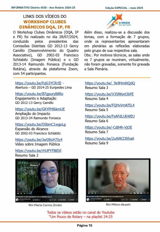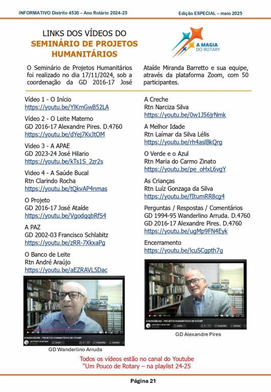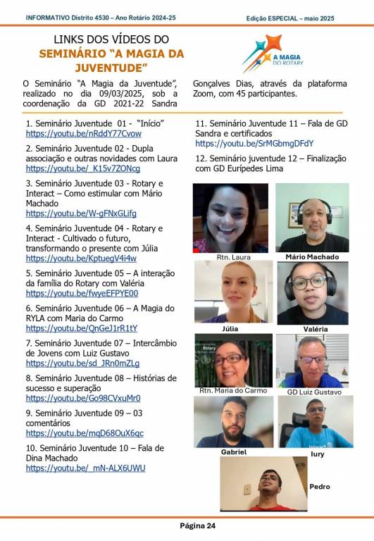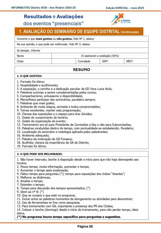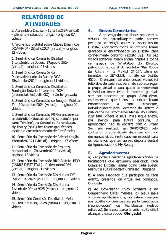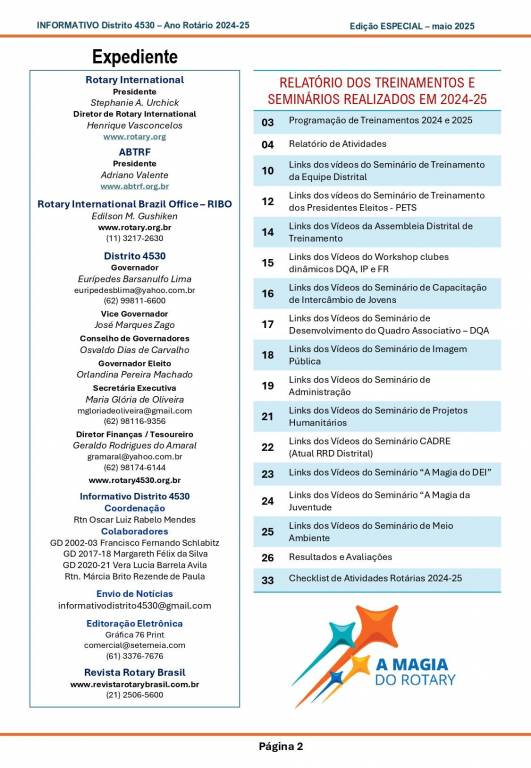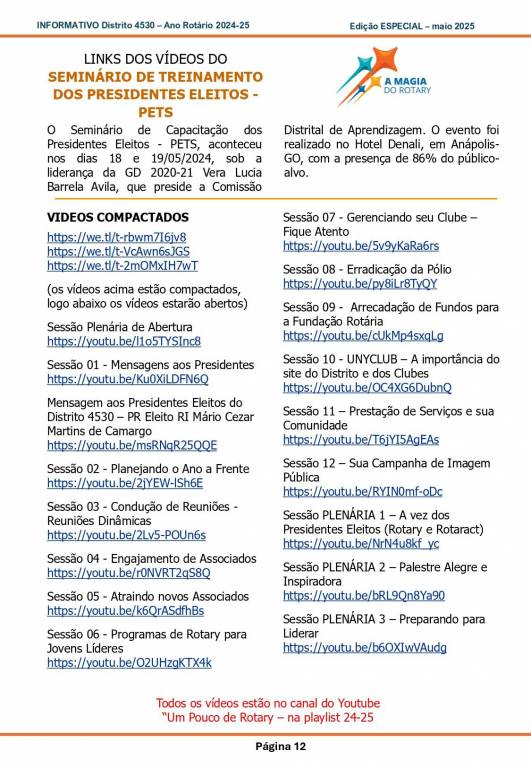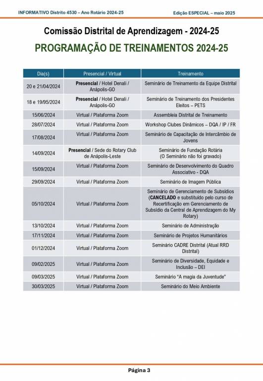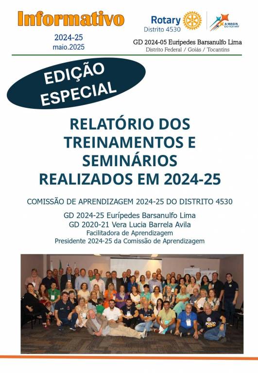 Esta é uma edição especial de Informativo para conhecimento de todos os associados do Distrito 4530 em relação aos treinamentos do ano 2024-25.