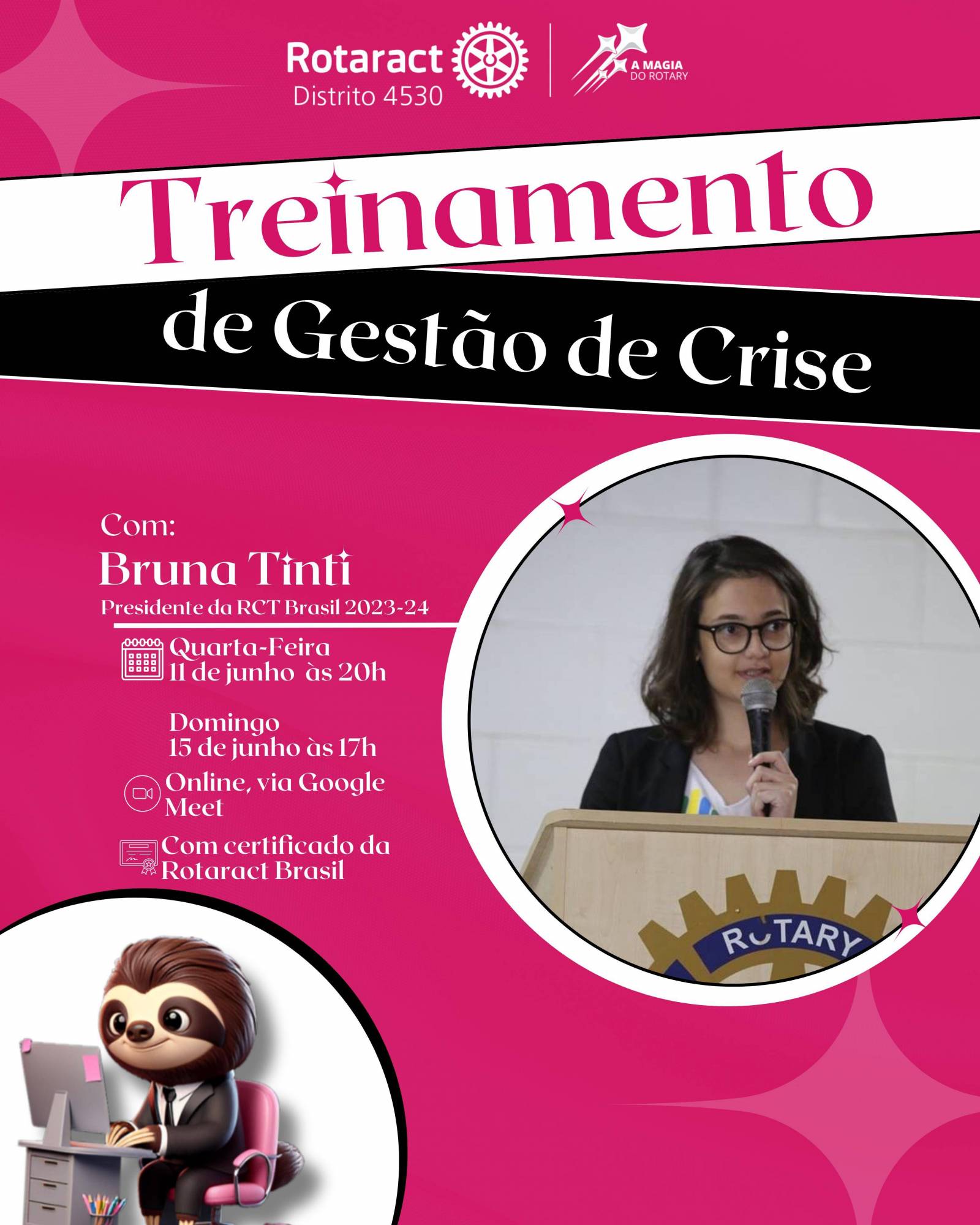 Nos dias 11 e 15 de junho de 2025, o Rotaract Distrito 4530 promoveu, em parceria com a Rotaract Brasil, um importante Treinamento de Gestão de Crise, realizado de forma online.