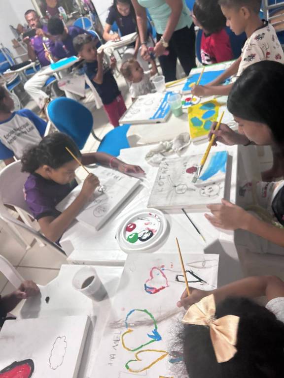 Uma dessas celebrações teve início na terça-feira, 15 de abril, com um momento especial na sede do clube: um encontro com as crianças do projeto permanente Rotary Esportes. Com o tema “A importância do Rotary na minha vida”, as crianças foram convidadas a expressar, de forma criativa, o que sentem pelo clube e pelo projeto. Utilizando telas, pincéis e tintas, elas produziram quadros que traduzem, em cores e formas, o impacto positivo do Rotary em suas vidas, sob o comando da presidente Thais Bandeira e colaboração das companheiras do RC Araguaína-Inclusão, lideradas pela presidente Maria Ivone Modesto.