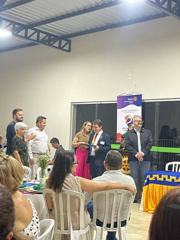 No dia 8 de fevereiro de 2024, os cinco Rotary Clubs de Araguaína — Pioneiro, Lago Azul, Capim Dourado, Doe Vida e Inclusão — se reuniram para oferecer um jantar festivo em homenagem à visita do Governador Distrital José Hilario e da Coordenadora Distrital Cris Carvalho.