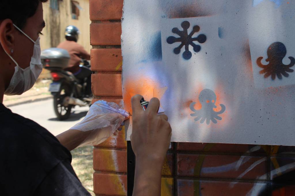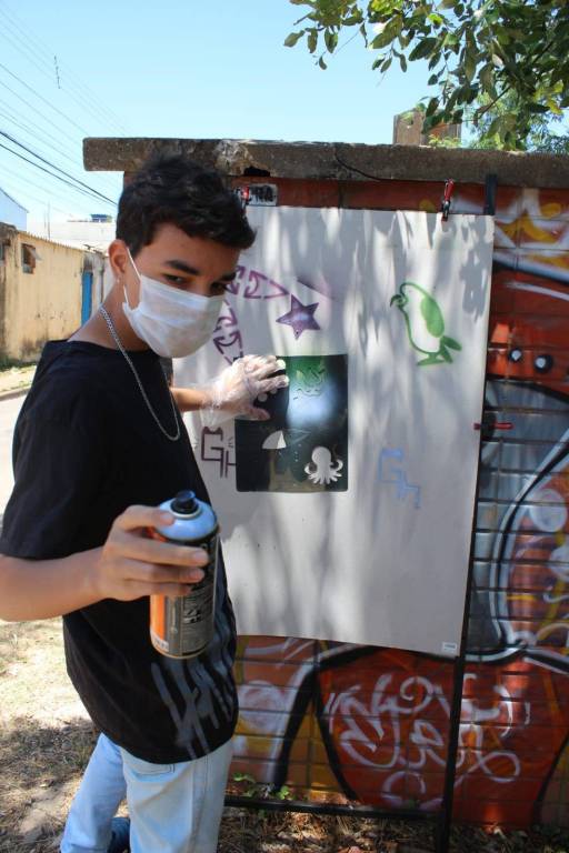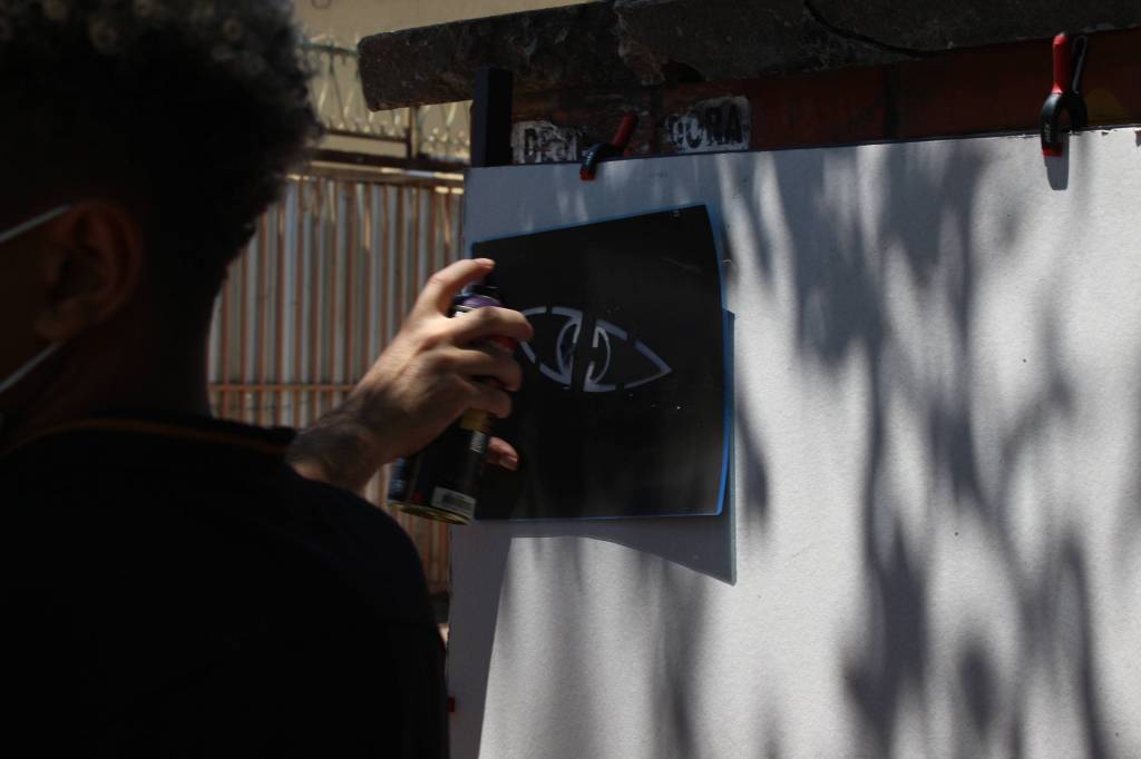 Do desenho no computador ao corte eletrônico na plotter, cada jovem viu sua ideia ganhar forma. O momento mais esperado foi a aplicação das artes em superfícies com sprays e stencil, numa atividade ao ar livre cheia de cor e criatividade.