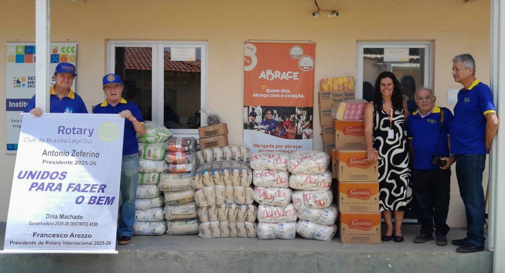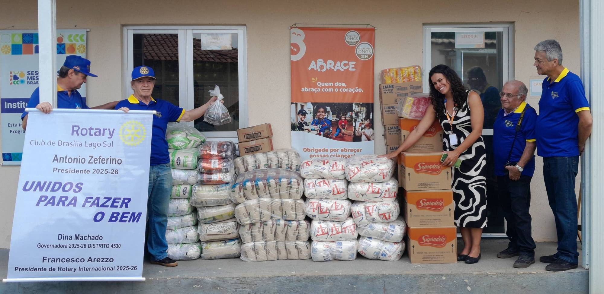 "Unidos Para Fazer o Bem" a campanha de alimentos dia 27/10/25 segunda-feira às 11:30hs, do Rotary Club de Brasília Lago Sul sob a presidência do companheiro Antonio Zeferino, representado pelos companheiros Demetrius Contoyannis, Jordivar Filgueira, Antônio Brito e Jose Ribamar, doou 1.044 kg de alimentos para a "ABRACE - Associação Brasileira de Assistência às Famílias de Crianças Portadoras de Câncer e Hemopatias ", na QE 25 Área Especial 01 Cave - Guará - DF.