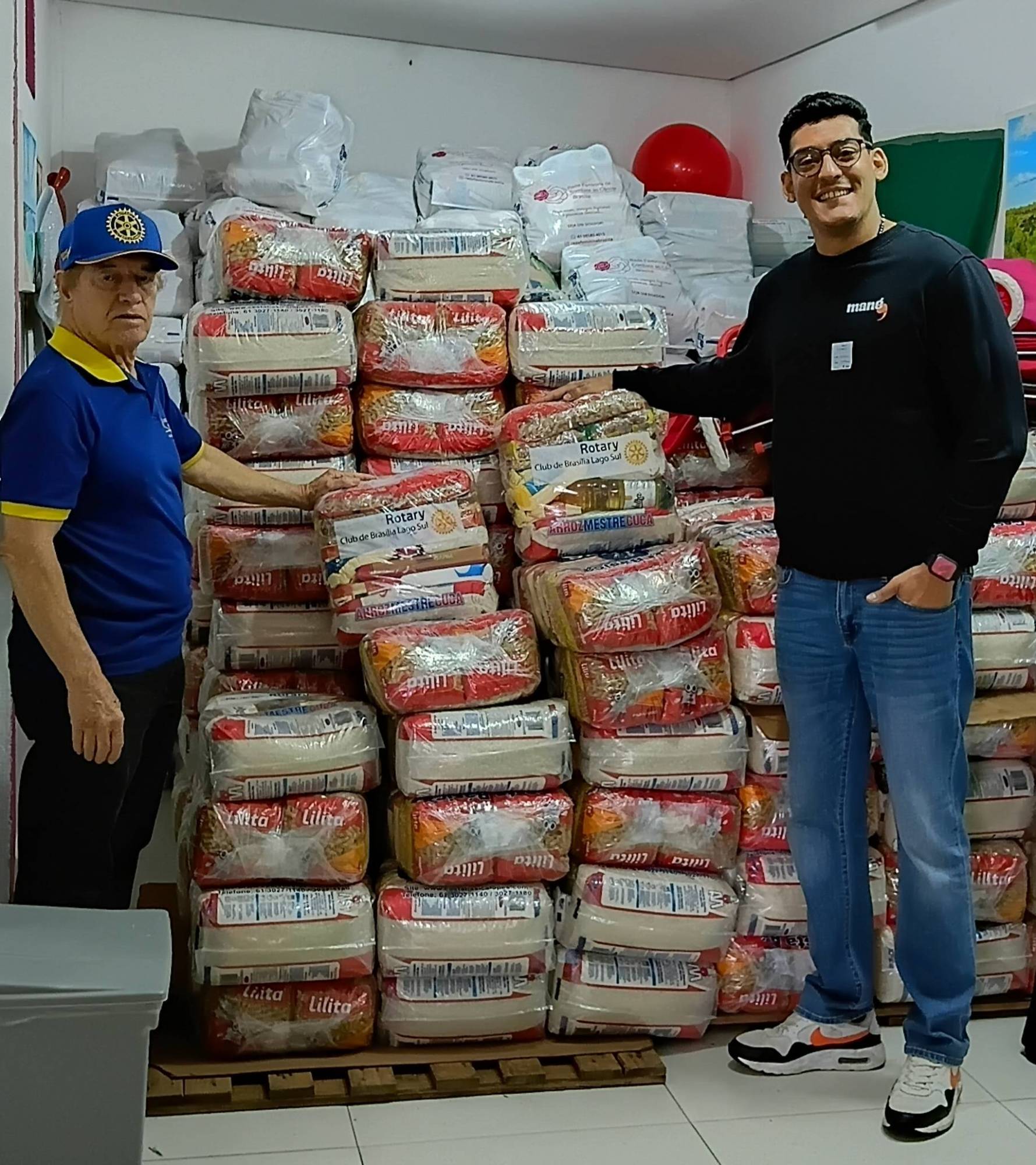 Continua a campanha de alimentos, realizada pelo Rotary Club de Brasília Lago Sul, sob a presidência do companheiro Antonio Zeferino, representado do companheiro Jordivar Filgueira, doando dia 18/12/25 quinta-feira às 08:00hs, para a Rede Feminina de Combate ao Câncer sob a coordenação da Larissa, graças aos recursos financeiros disponibilizados pelos parceiros: Mané Mercado, R2 Produções e Fome de Música, representados pelo diretor Felipe Ornela do Mané Mercado de Águas Claras.