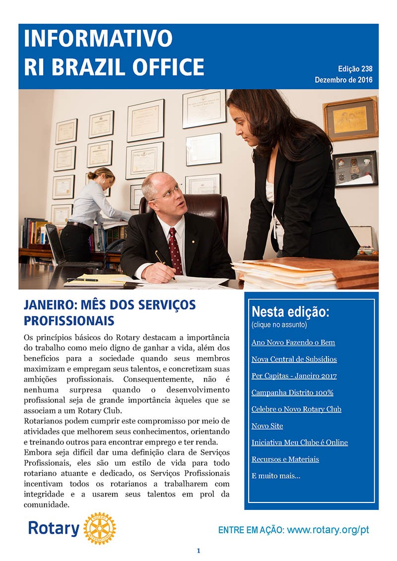 Informativo RI Brazil Office: Boletim informativo do escritório do Rotary International no Brasil, para auxílio dos clubes e distrito, Dezembro 2016.