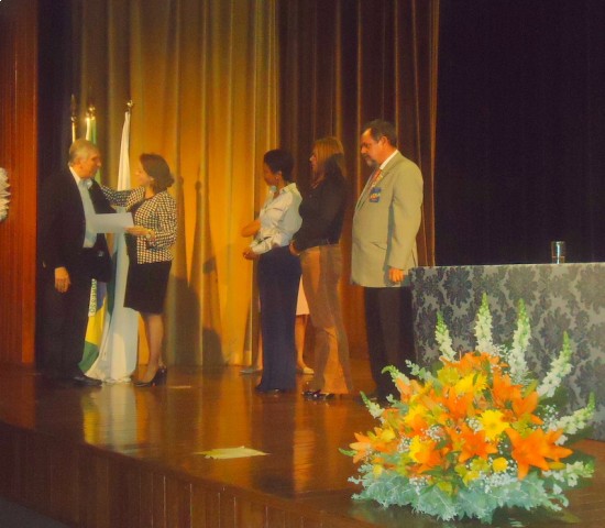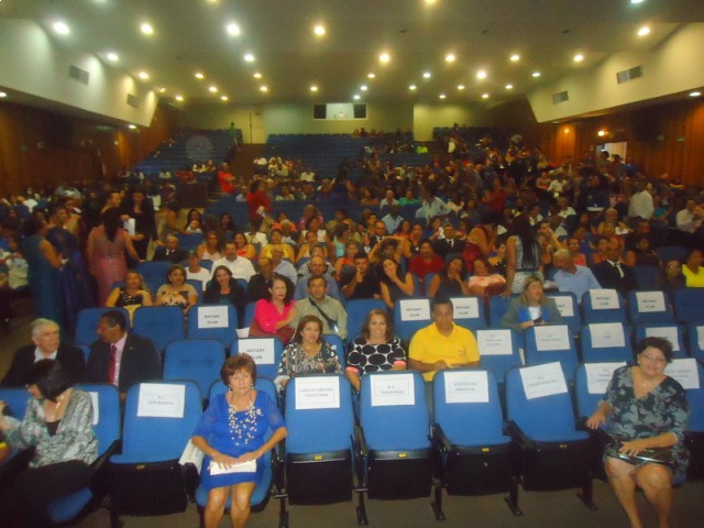 Na mesa diretora estava representando a UCB a Diretora da Escola de Tecnologia e Educação Dra. Christine Carvalho, a Coordenadora do projeto Alfabetização Cidadã professora Maria de Lourdes, o Governador do Distrito 4530 de Rotary International Ataíde Barretto e a Superintendente da Sustentare Sra. Rejane Oliveira.