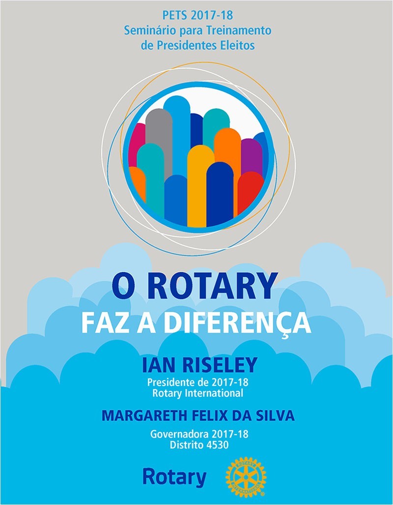Nosso PETS, que será realizado de 31 de março a 02 de abril, está chegando e o seu comparecimento será fundamental para o sucesso do ano rotário e principalmente para o êxito do treinamento, a leitura da documentação que estamos enviando é muito importante para que as atividades desenvolvidas no PETS alcance os objetivos que estão sendo elaborados pela governadora Margareth, sua participação nas discussões e no levantamento de ideias, proporcionarão a todos soluções que poderá ajudá-lo a superar os conflitos que possivelmente surgirão durante o seu ano rotário.