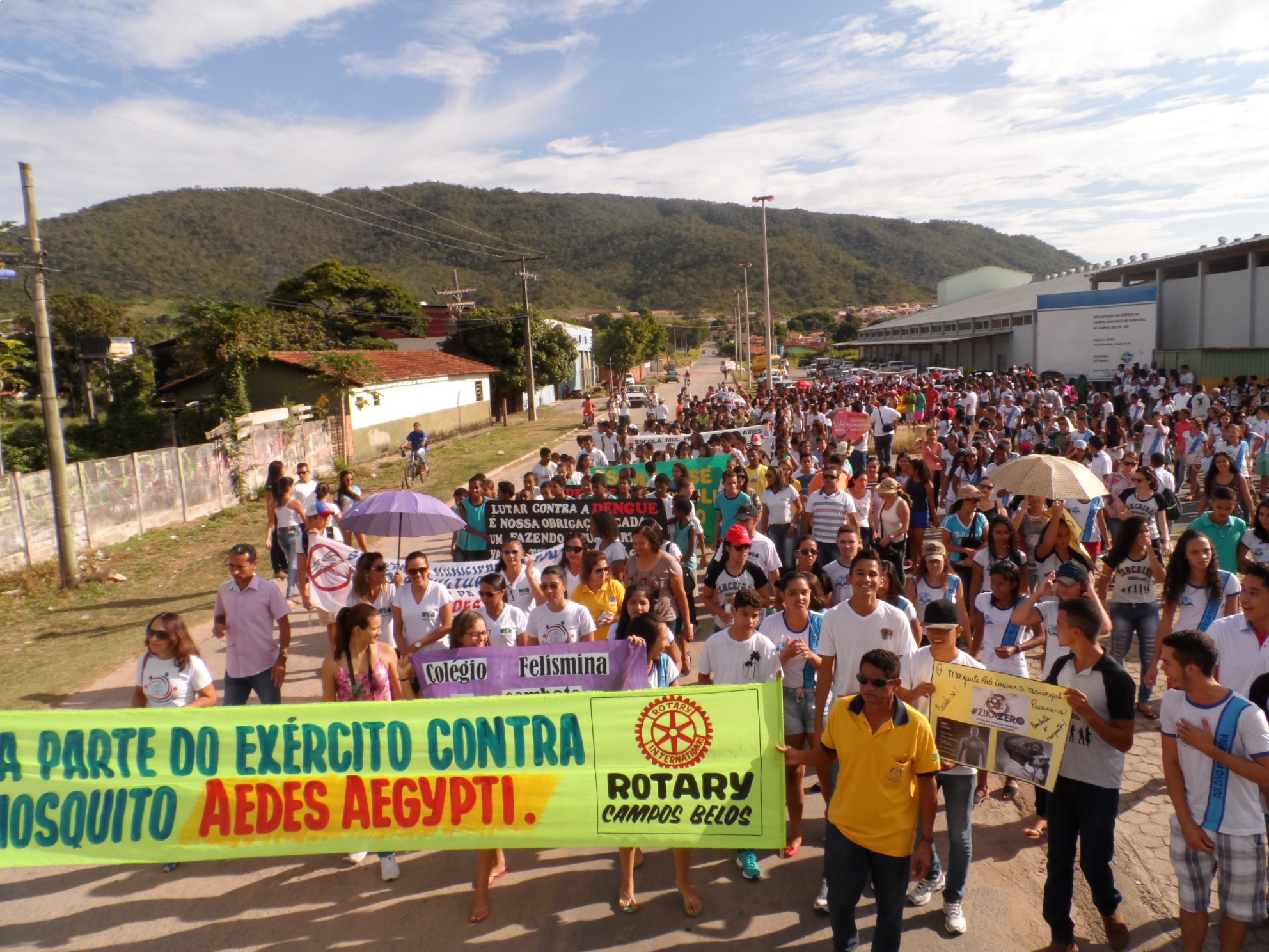O Rotary Club e Casa da Amizade de Campos Belos, o Instituto Federal Goiano, Universidade Estadual de Goiás, Subsecretaria Estadual de Educação e Secretarias Municipal de Educação, Saúde e Assistência Social, realizaram uma grande passeata/carreata de conscientização ao combate do mosquito Aedes Aegypti. Alunos e servidores das redes municipal, estadual e federal participaram do evento. O nosso imenso agradecimento a todos que prestigiaram e participaram da ação. Lembre-se, a guerra contra mosquito continua. Não abandone o seu posto!!!
