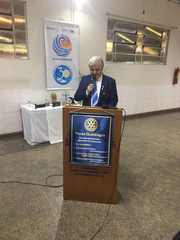 Na noite, foi realizada a festiva sendo empossados três novos companheiros no Rotary e 2 novos participantes do Rotary Kids. O governador Vertinho se emocionou “É um momento muito lindo da festiva. Empossamos a Julia e o Matheus, demonstrando que o futuro do Rotary está aí.