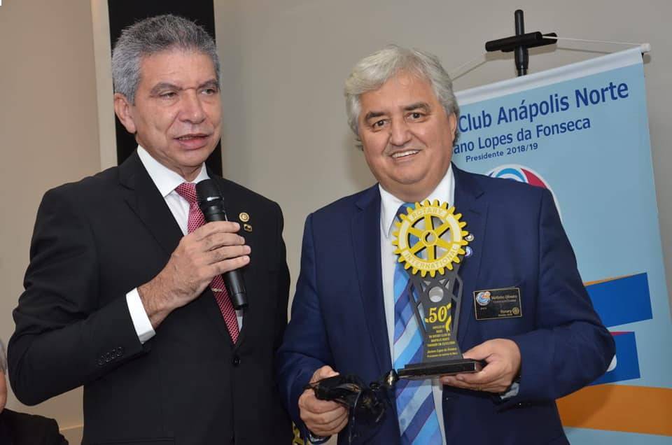 O governador Vertinho de Oliveira participou da solenidade de 50 anos do Rotary Club Anápolis Norte. Vertinho elogiou os projetos sociais realizados pelo clube na região.
